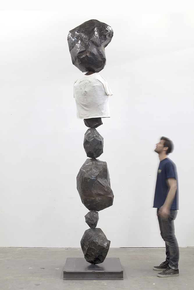 Steel, charred paint, Peter Sutherland's t-shirt, wax