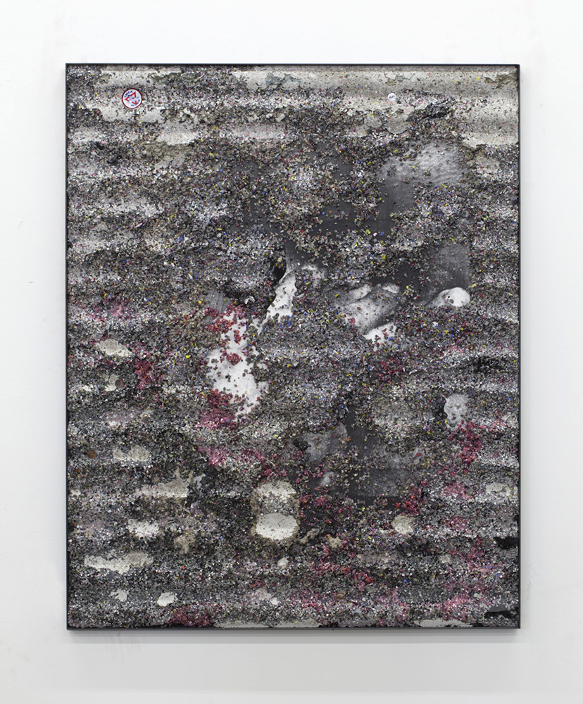 CNC milled pulverized plastic, silkscreen on paper, patch, buttons, mirror polished pocket change, base coat