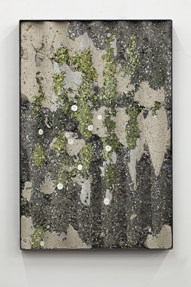 CNC milled pulverized plastic, cat litter, joint compound, base coat, Corian, polyurethane resin, plywood, steel frame