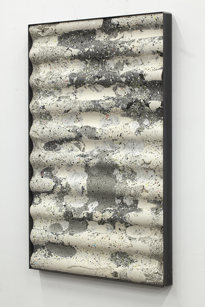 CNC milled pulverized plastic, cat litter, joint compound, base coat, Corian, polyurethane resin, plywood and steel frame